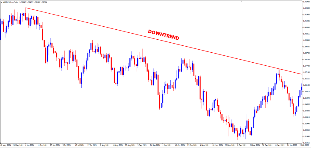 Khi nói đến phân tích xu hướng, một xu hướng giảm được đặc trưng bởi một loạt các đỉnh và đáy thấp hơn trong biểu đồ giá. Đường xu hướng giảm được hình thành bằng cách tìm thấy hai hoặc nhiều mức cao nhất liên tiếp của biến động giá theo sau.