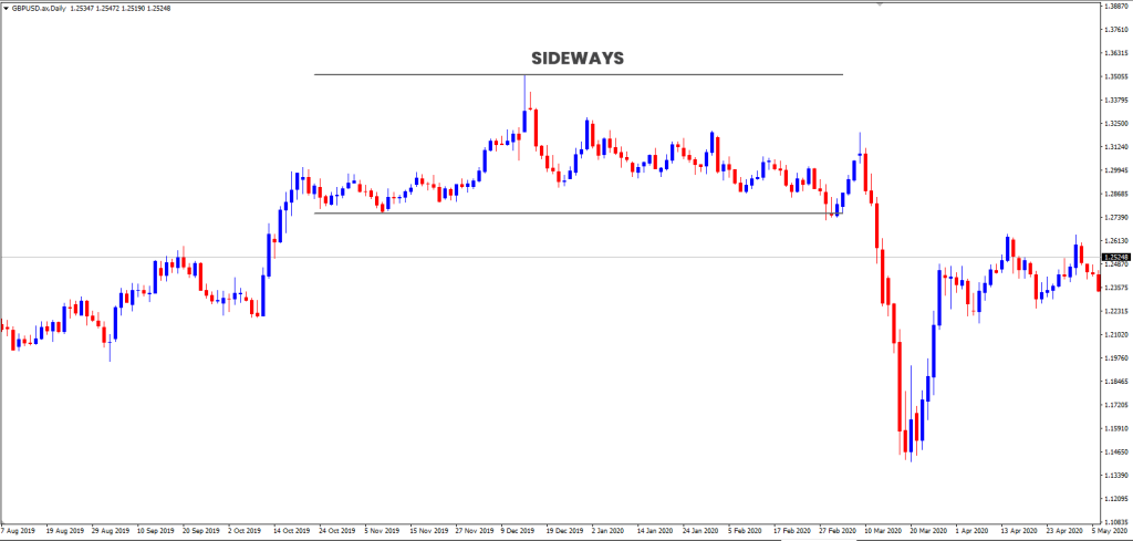 Xu hướng đi ngang có thể được coi là các đường nằm ngang giữa mức giảm và mức giảm của tỷ giá hối đoái. Giá tăng hoặc giảm khi kết thúc xu hướng, có thể kéo dài từ vài ngày đến vài tuần. Thông thường, sau một xu hướng đi ngang trên thị trường, giá tiền tệ sẽ quay trở lại theo hướng trước khi xu hướng bắt đầu.