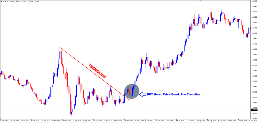 Về cơ bản, các nhà giao dịch sẽ vào các vị thế mua khi xu hướng giá đang tăng lên. Mặt khác, họ bán khi giá đang giảm xuống. Các đường xu hướng giúp xác định các điểm vào và thoát thông qua các mức hỗ trợ và kháng cự. Một cách khác để sử dụng chiến lược này là chờ đợi sự đảo ngược xu hướng để tham gia thị trường. Cuối cùng, bất kỳ xu hướng giá nào cũng sẽ kết thúc.